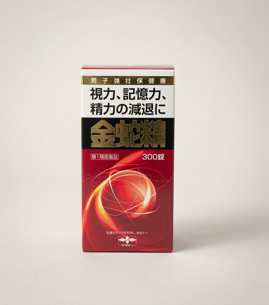 メチルテストステロン3.0mg、DL-メチオニン20.0mg、ルチン水和物20.0mg、チアミン硝化物(ビタミンB1)3.0mg、リボフラビン(ビタミンB2)1.0mg、ニコチン酸アミド30.0mg、アスコルビン酸(ビタミンC)30.0mg、タウリン45.0mg、ニンジン100.0mg、オウレン50.0mg、ハンピ末300.0mg、カシュウ末70.0mg、インヨウカク末70.0mg、サンヤク末70.0mg、ビャクシ末50.0mg。